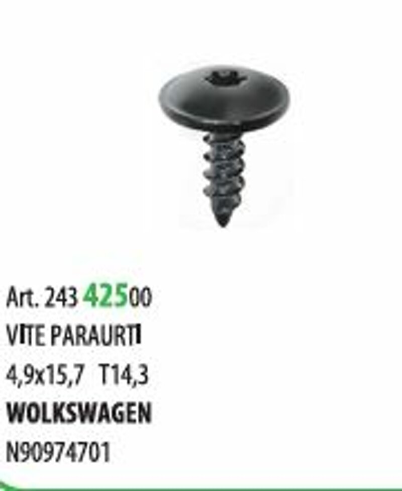 Questo non è un semplice bullone: è la vite speciale paraurti progettata specificamente per i modelli Audi e Volkswagen. Con il codice OEM N90974701, questa vite garantisce una compatibilità e un'affidabilità totali, essenziali per la sicurezza e l'integrità strutturale del veicolo.