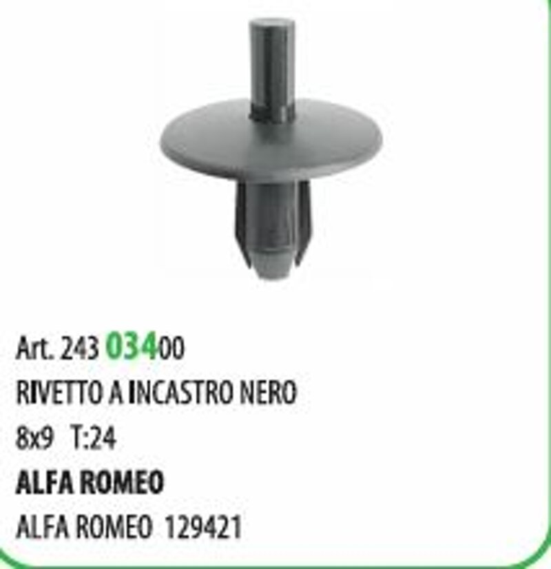 Questo rivetto in plastica è un componente di fissaggio essenziale, progettato specificamente per una vasta gamma di modelli Alfa Romeo. Con il codice OEM 129421, garantisce un accoppiamento perfetto e sicuro per diversi pannelli e rivestimenti interni ed esterni.
